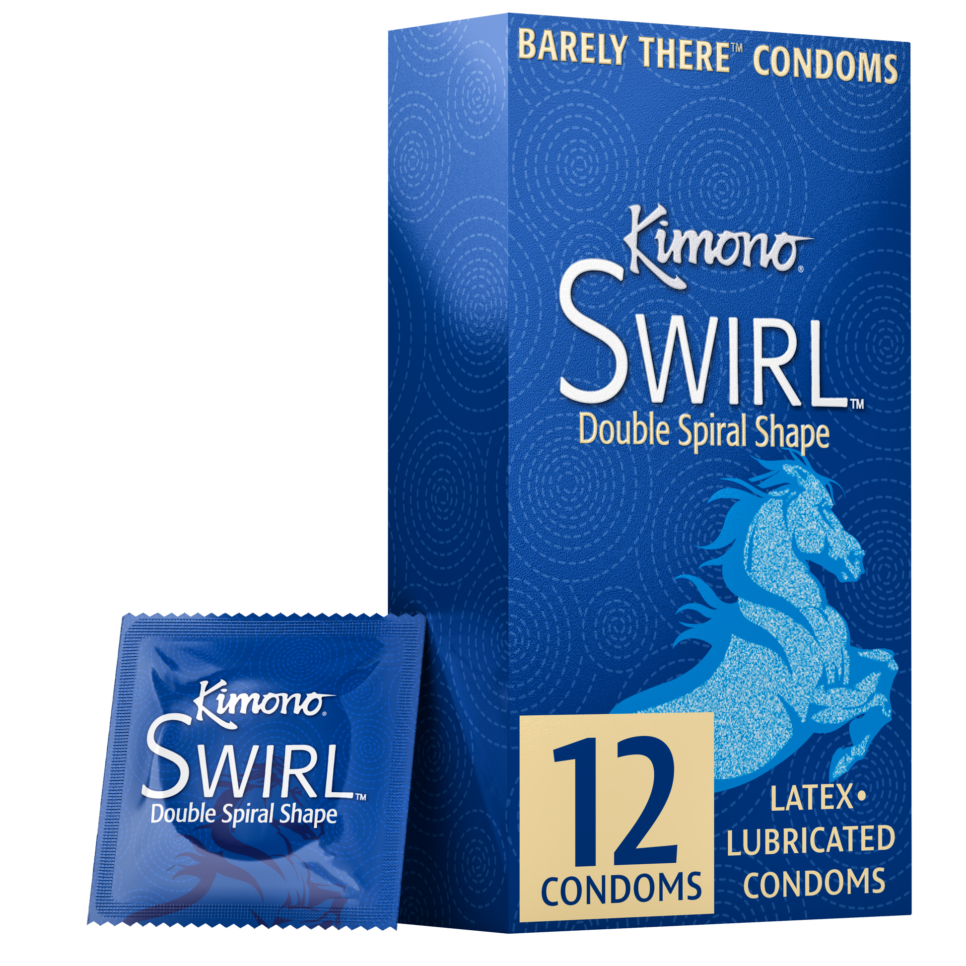 Feel every twist and turn. Kimono Swirl features a one-of-a-kind double-helix shape that twists with movement for deep, dynamic pleasure. Designed to heighten sensation for both partners, this thicker latex condom adds texture, friction, and fun to every motion. Made with premium natural latex for strength, flexibility, and a clean, odor-free experience.